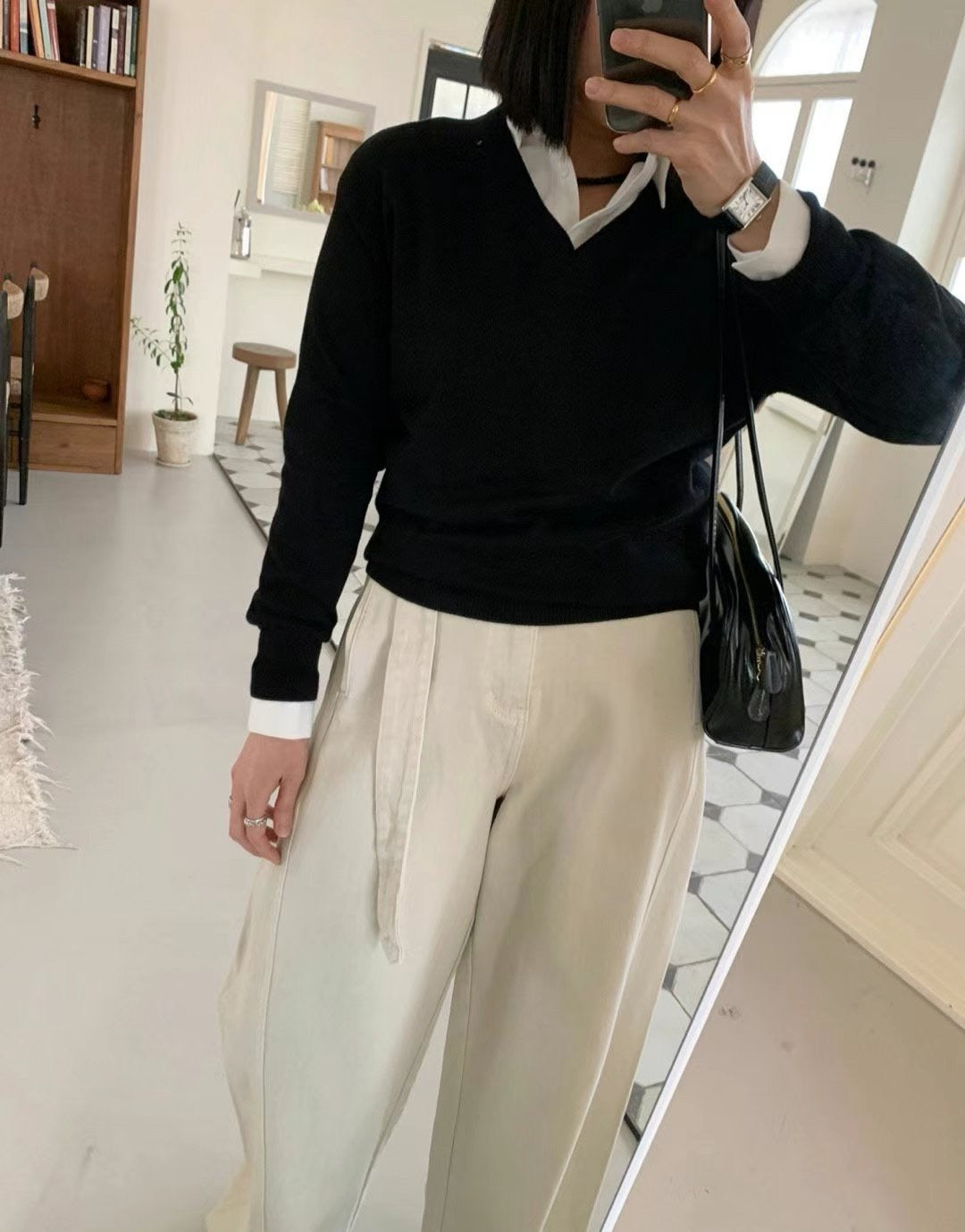 Banito 經典V領收腰春款羊毛衫|knit250405