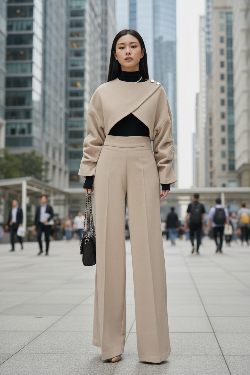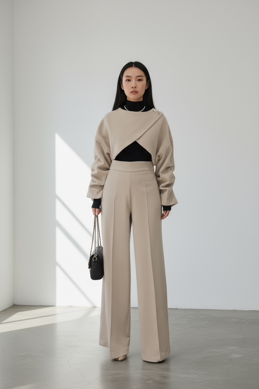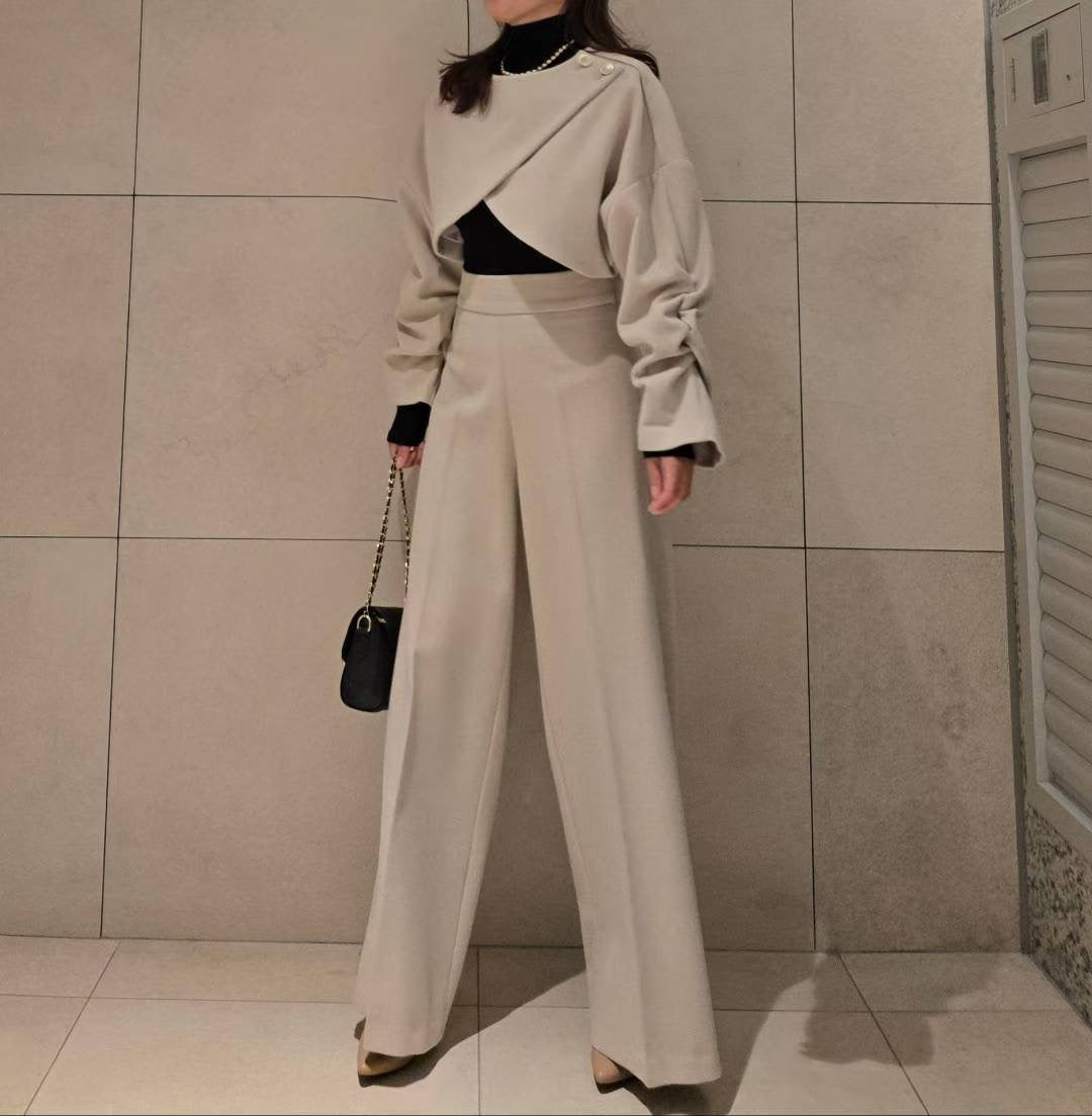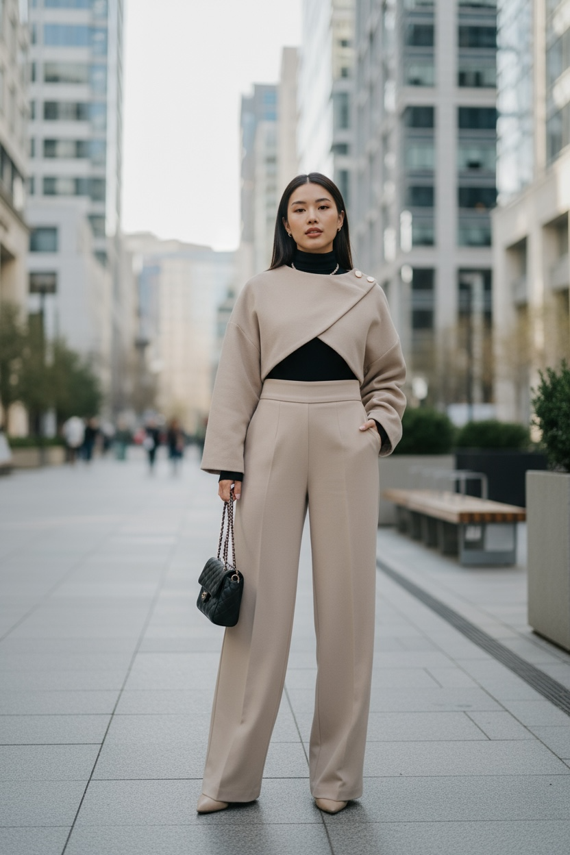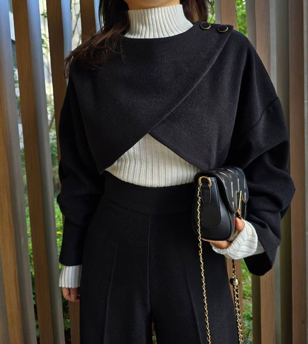 內搭高領上衣,保暖又有層次感,營造俐落時髦氛圍。