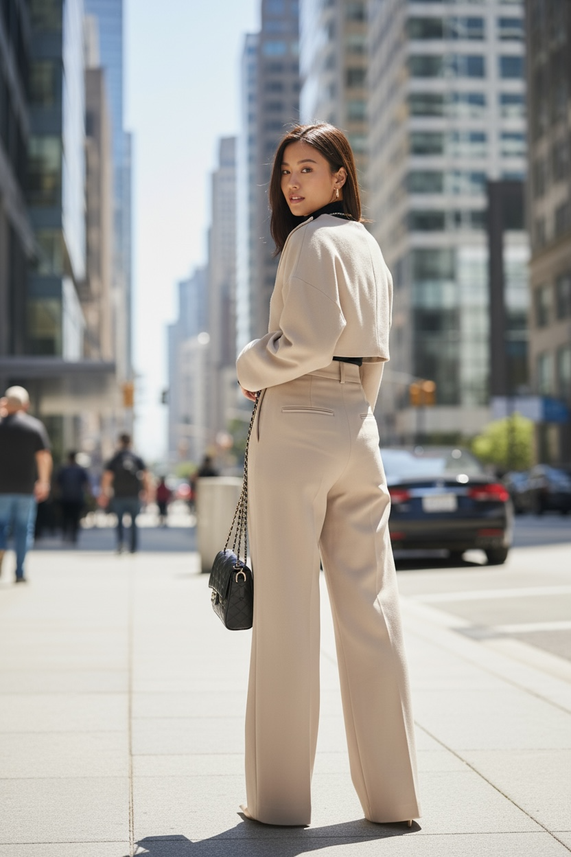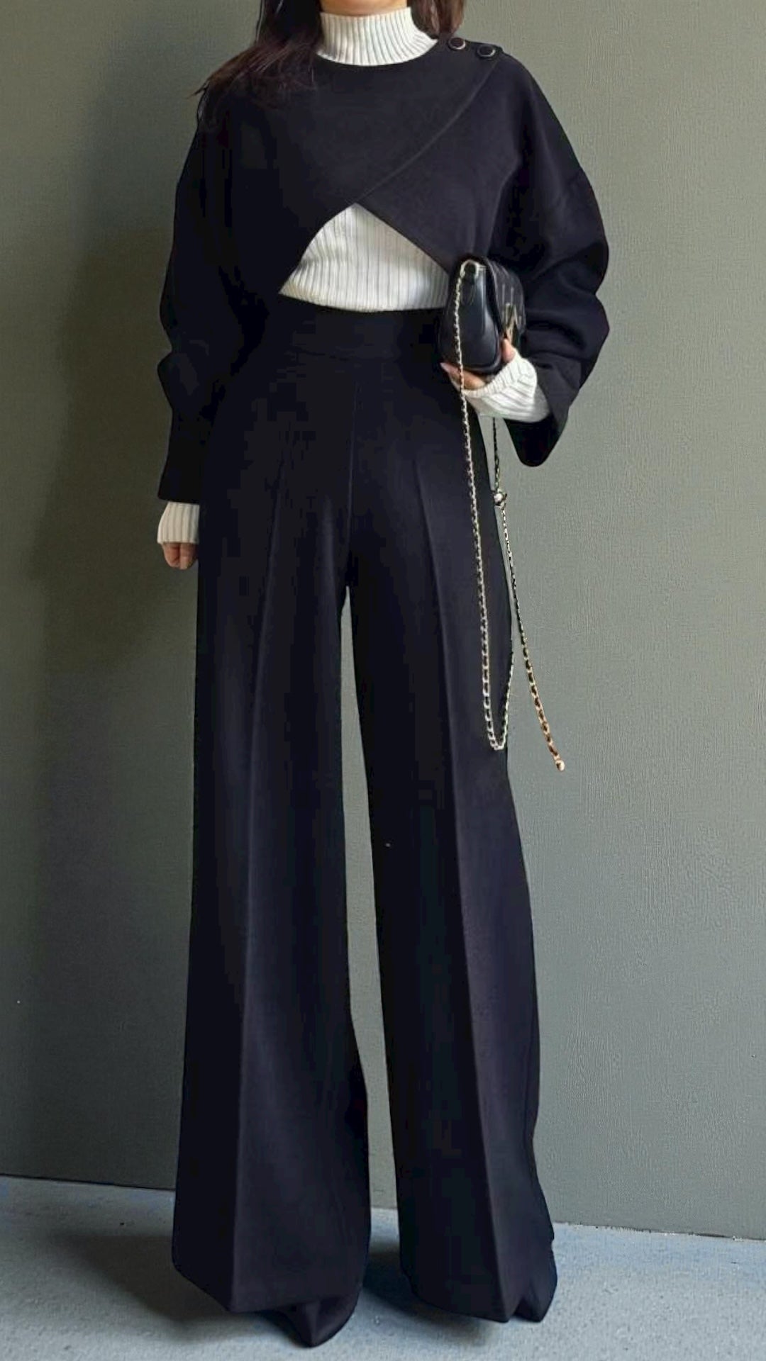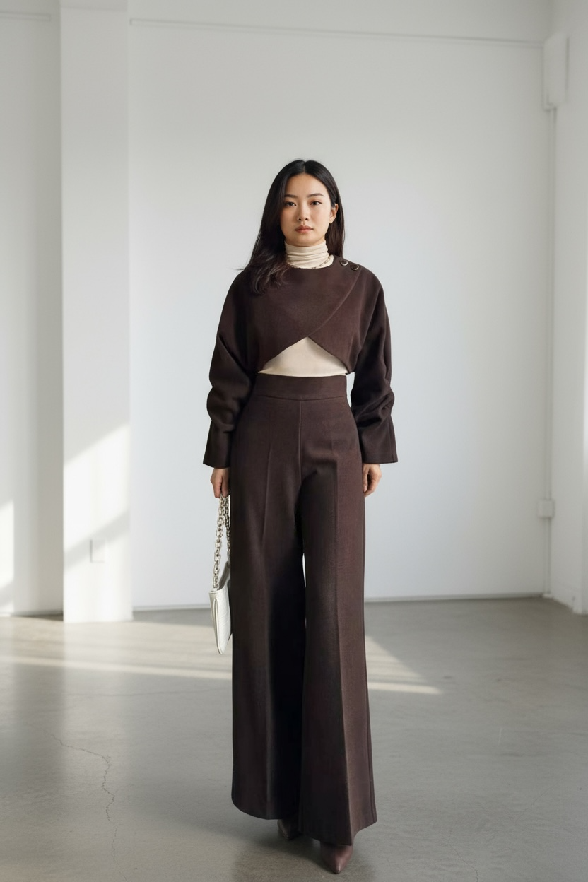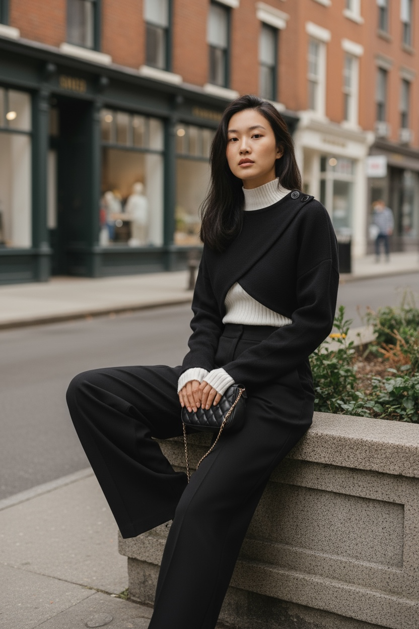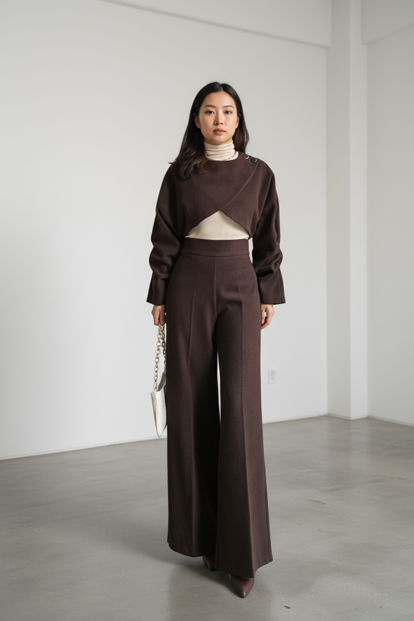 內搭高領上衣,保暖又有層次感,營造俐落時髦氛圍。