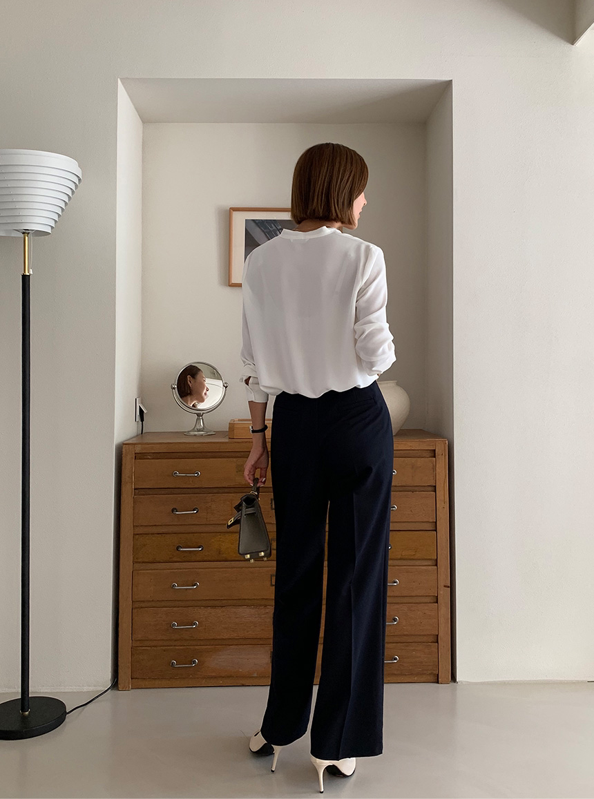 Lena Shirt 簡約v領素色長袖上衣,TOP040701