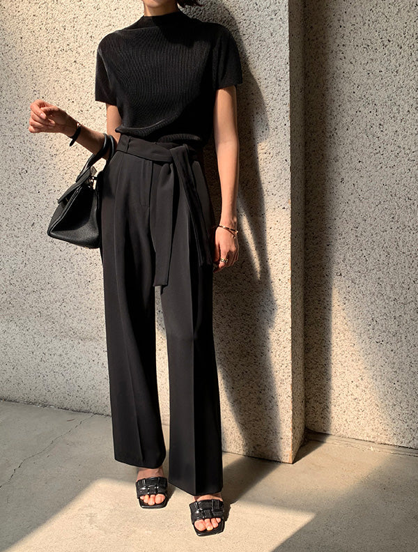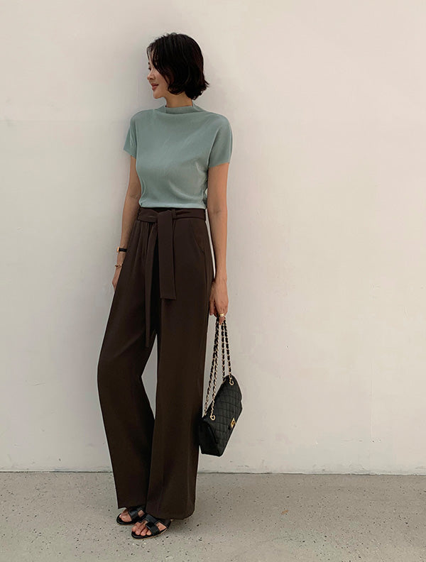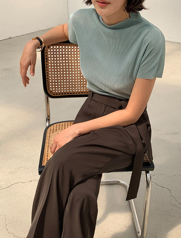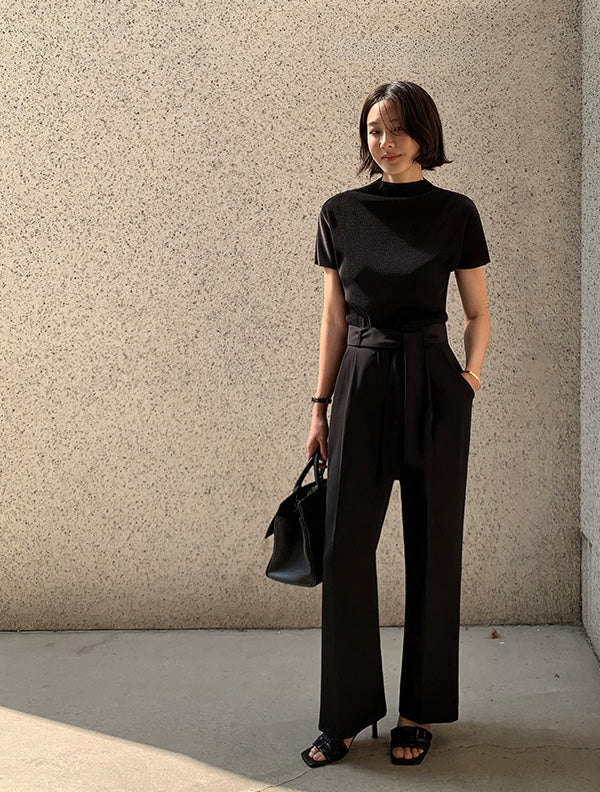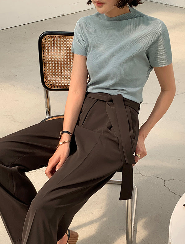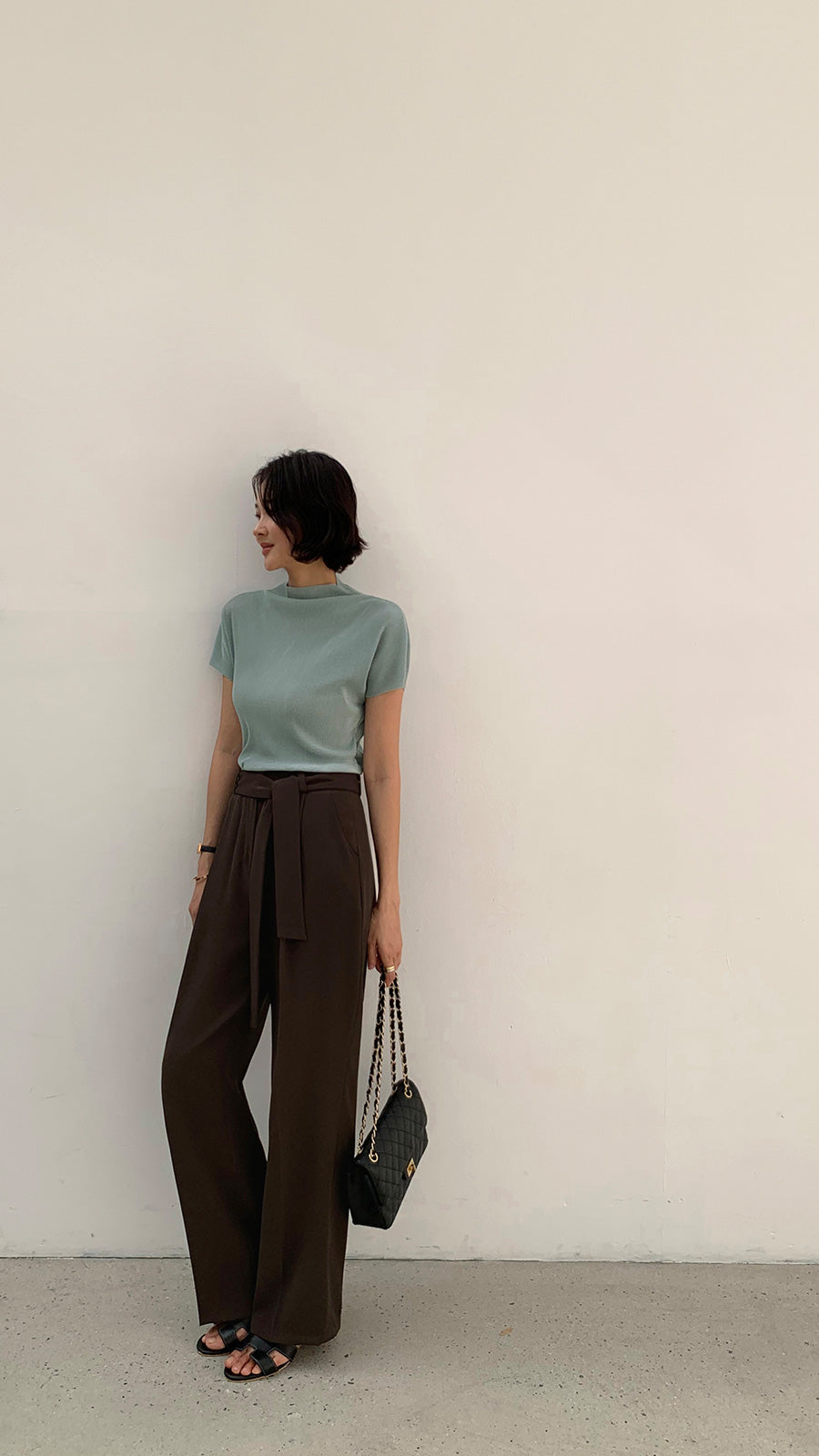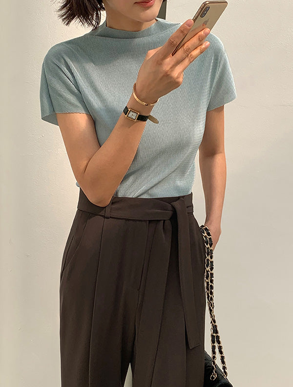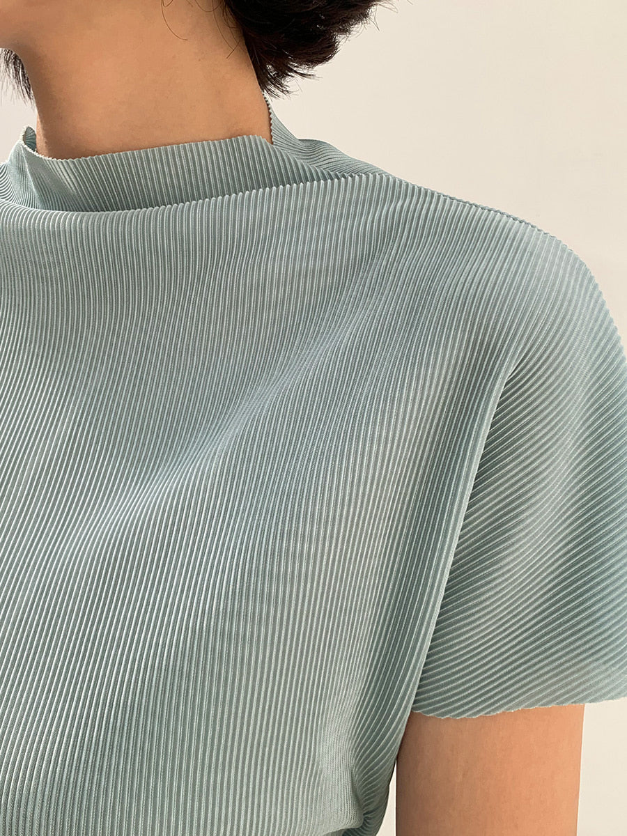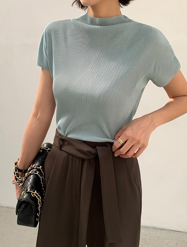 半高領的設計既不悶熱也不厚重,配上輕盈微透的材質與俐落的縱壓紋,整體散發出一種簡潔又優雅的質感氣息。